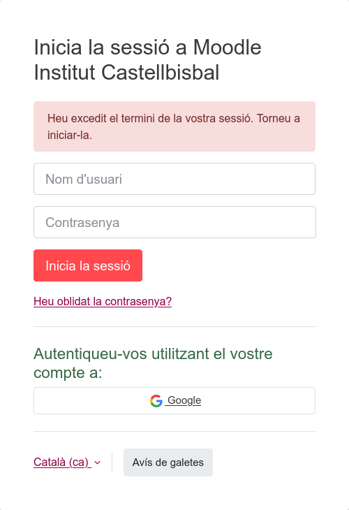 Aqui crea si no tes compte, o si ya tens una compta, inicia sesio amb nom de usuari i contrasenya o amb Google.