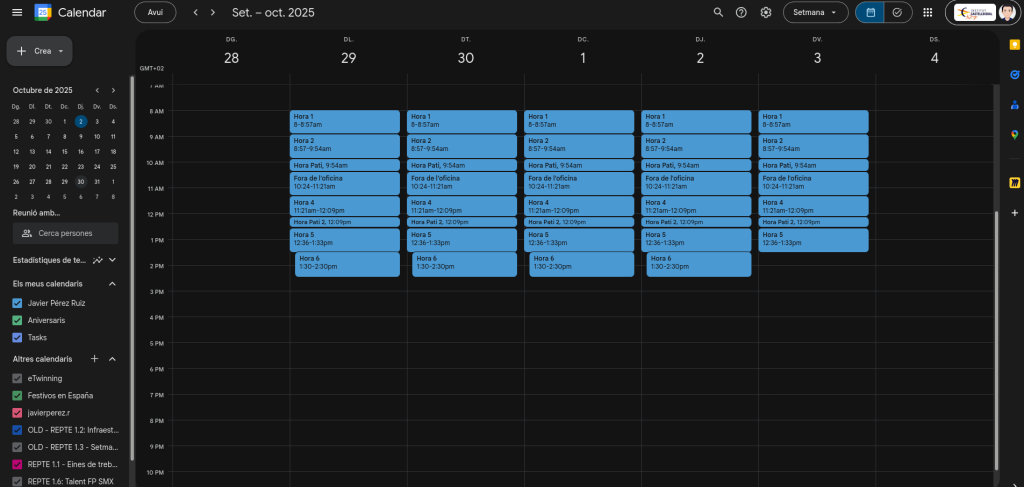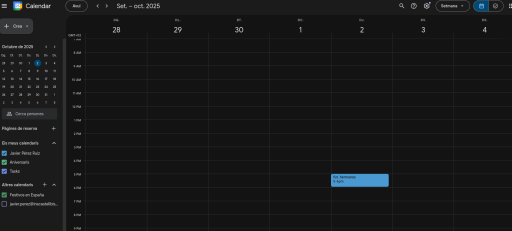 Aquest es el calendari personal, nomes els Dijous a les 5 de la tarde a 6 de la tarde.
