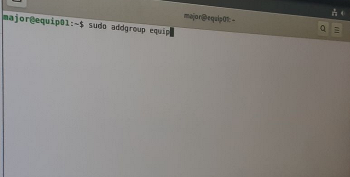 Afegeix l’usuari que tinguis al grup ‘equip’ (o al nom que has posat al teu grup) amb permisos d’administrador.