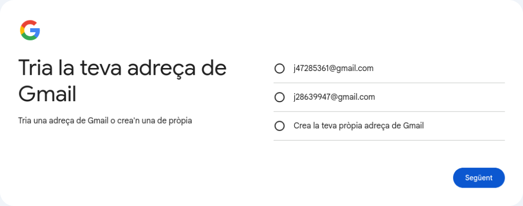 Pots posar un Gmail per defecte o posar-te el teu, el que més serveixes és posar el teu nom al compte Gmail, però si vols més seguretat en posa una del que surten aleatòriament.