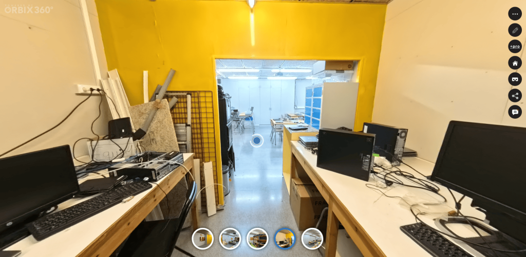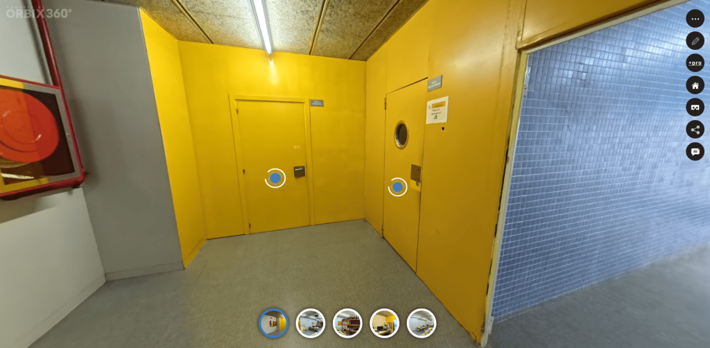 Tour Virtual 360 Aquí está el meu TourVirtual. Aqui posu una imatgue de com es veo, els botons blaus son per passar a la següent zona.