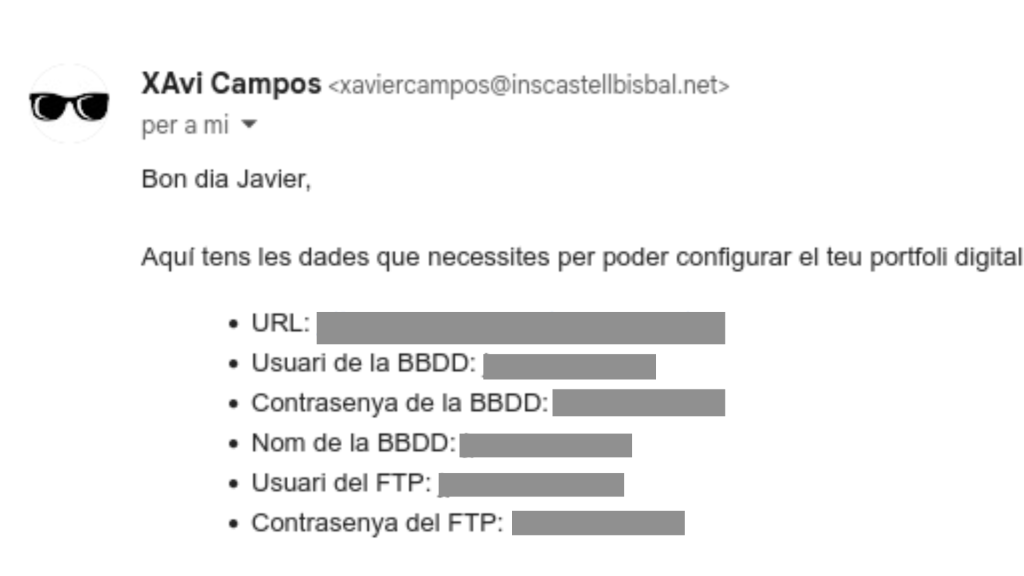 Abans de posar en marxa el nostre WordPress, el Xavi ens va fer arribar tota la informació necessària a cada membre de l’equip. Amb aquests detalls ja a punt, només faltava completar la instal·lació. Per fer-ho, vam obrir el navegador i vam accedir a la pàgina “wp-admin/install.php”, on vam seguir els passos per configurar el lloc i deixar-lo llest per començar a utilitzar-lo.