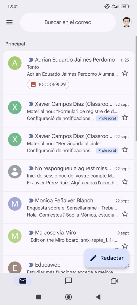 Sincronització en el mòbil del correu i xat